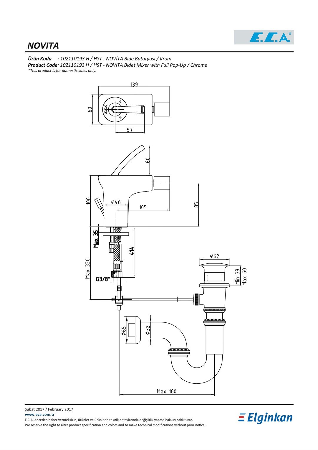 *Çıkış ucu uzunluğu 105 mm dir. *Çıkış ucu yüksekliği 85 mm dir. *3 bar Basınçta su akış debisi 8,3 L/d dir *20 Yıl Garanti